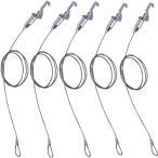 [Yヤクニタツ] ピクチャーハンガー 5本セット 長さ50cm 径2mm ピクチャーレール用 ステンレスワイヤー 吊り下げ金具 額受 自在金具付 2M
